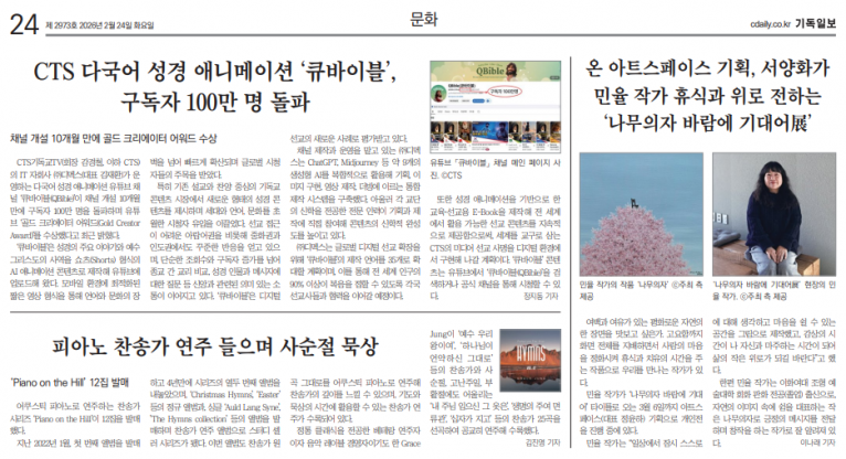 뮤직타임 [기사] 피아노 찬송가 연주 들으며 사순절 묵상(기독일보)