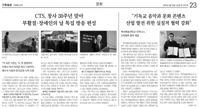 [기사] 기독교 음악과 문화 콘텐츠 산업 발전 위한 실질적 협력 강화(기독일보)
